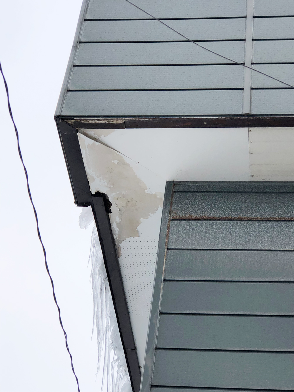 ※罹災状況は春の強風で穴の開いた軒天井が落下した。
